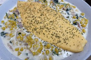 コーンとほうれん草のクリームソースオムレツ