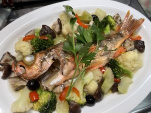 写真は、メバルとたっぷり野菜のアクアパッツァ。