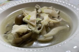 鶏ももとキノコの出汁柚子胡椒スープ